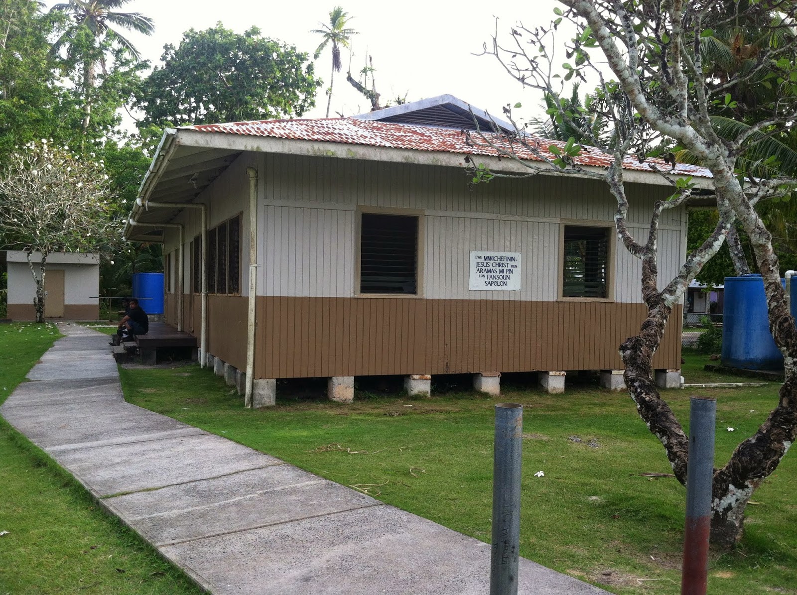 Our First day in Church at the Mwan District Center Building. There are four church buildings on Weno.